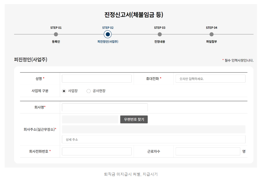 >> 내용에는 퇴직금을 받지못한 금액, 회사와의 히스토리 등을 적어주시면 담당관이 확인을 합니다.
